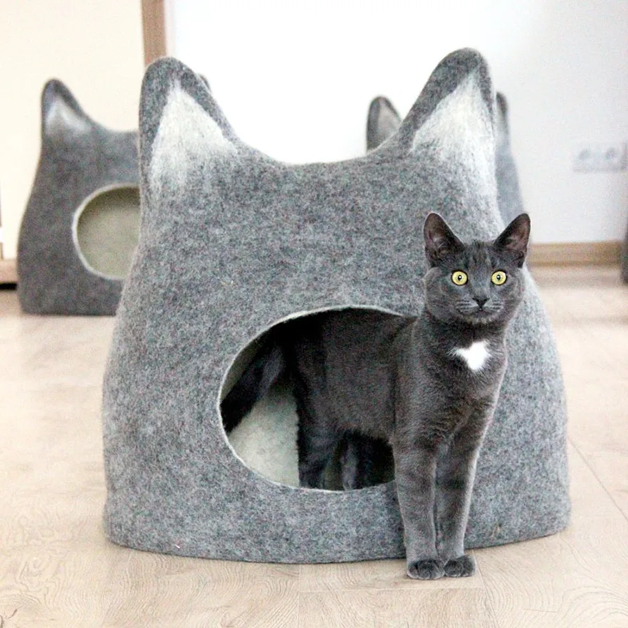 Comfortable Customizable Removable Wool Felt Cat Cave For Large Kittens