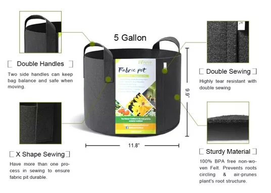 Eco Friendly Nonwoven Felt Fabric Grow Bag For Garden Use