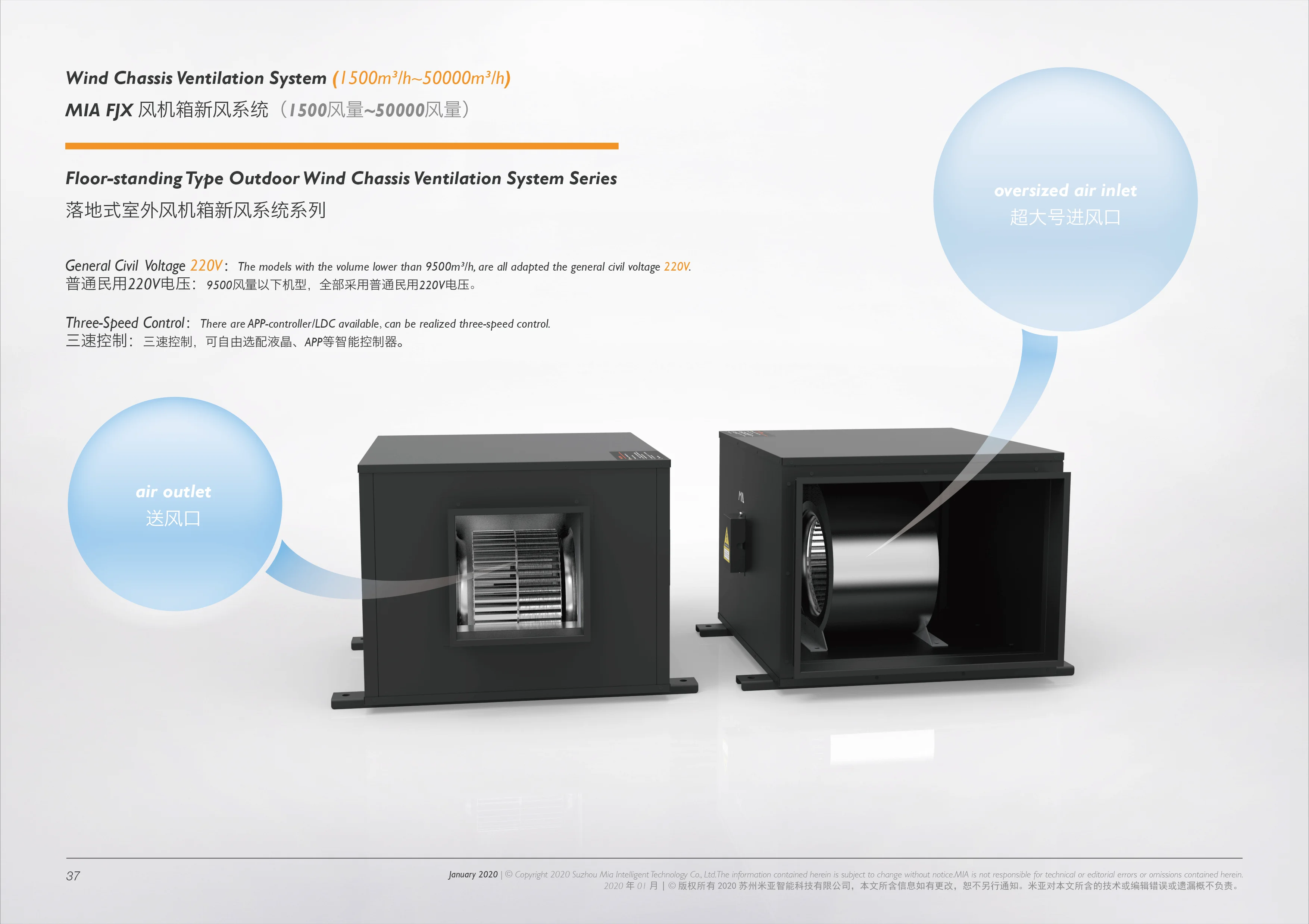 2500m3/h Large Air Volume Acoustic Box Fan/Air Supply/ Wind Chassis Ventilation System Model:MIA-250FJX