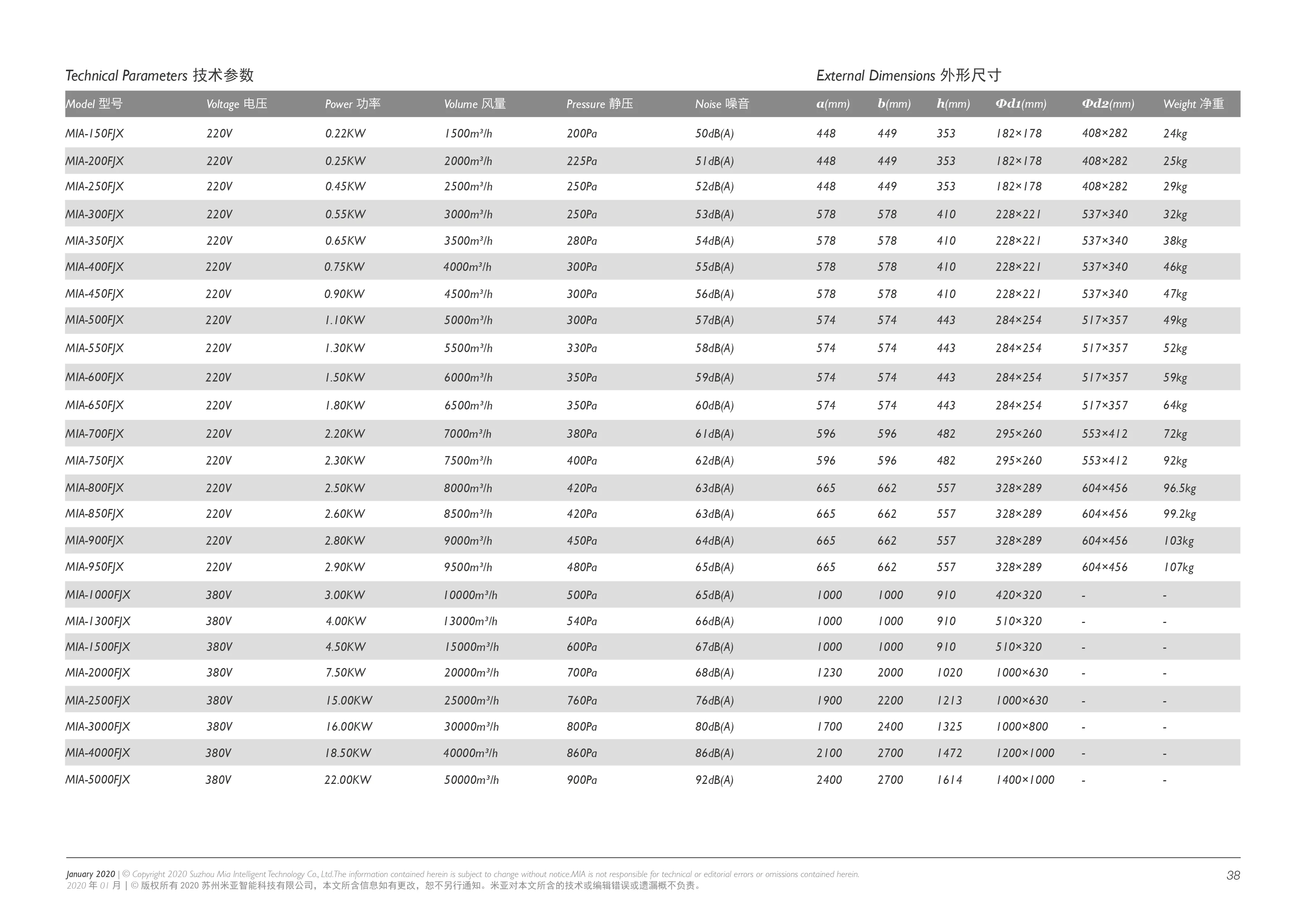 Miaventilation Supply/exhaust Fan Large Volume 8,000 Cmh MIA-800FJX