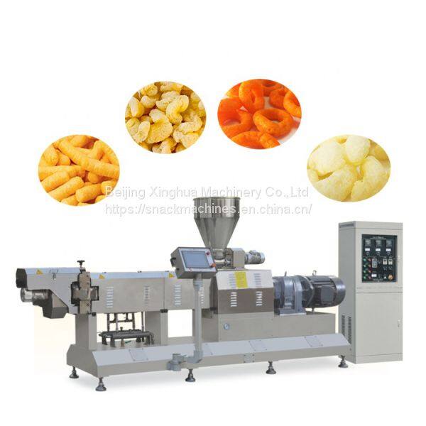 Puffed corn snack production line has festures of flexible collocation, extensive applied raw materials, varioussnacks and easy operation. It is full automatic from mixing,extruding, shaping, cutting, drying to flavoring in one-pass operation. By changing the moulds and process technology, you can produce various shapse of puffing snacks such as ring, flowers, balls, strips, moons, stars etc. Also, you can produce core-filling snacks with the same line. All the puffed food taste crispy, easy to be digested. They meet with great favor home and abroad.