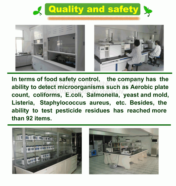 In terms of food safety control, the company has the ability to detect microorganisms such as Aerobic plate count, coliforms, li, Salmonella, yeast and mold, Listeria, Staphylococcus aureus, etc. Besides, the ability to test pesticide residues has reached more than 92 items.