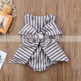 Stripe Pattern Sleeveless Romper Jumpsuit With Big Bow Beautiful Girls Daily Wear Romper