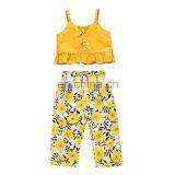 Gloden Gallus Crop Top and Floral Pattern Pants Boutique Girls Suit Wholesale Price