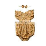 Khaki Floral Pattern Flutter Sleeve Romper Jumpsuit Factory Wholesale Price Boutique Girls Cotton Romper
