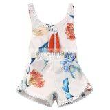 Cute Floral Pattern Gallus Romper Jumpsuit Factory Direct Sale Price Boutique Girls Cotton Romper