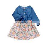 Denim Style Full Sleeve Dress With Floral Pattern Girl Daily Wearing Dress Wholesale Price