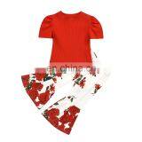 Plain Red Top and Rose Pattern Bell Bottom 2pcs Beautiful Baby Girl Boutique Suit