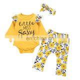 Three-pieces Floral Pattern Romper Matching Headband Girls Suit Wholesale Price