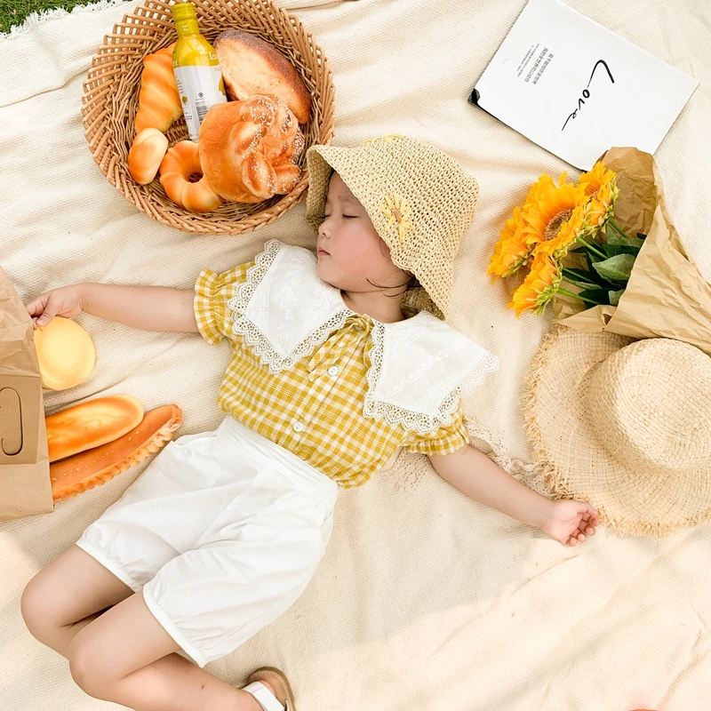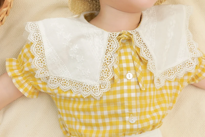 Home > Apparel & Accessories > Wedding Dresses & Ceremonial Clothing > Flower Girl Dresses > 8278/Original Brand Luxury Kids Shirt Baby Girls Boutique Fresh Plaid Top With Lace Turn Down Collar