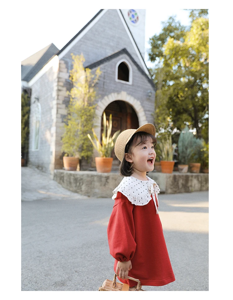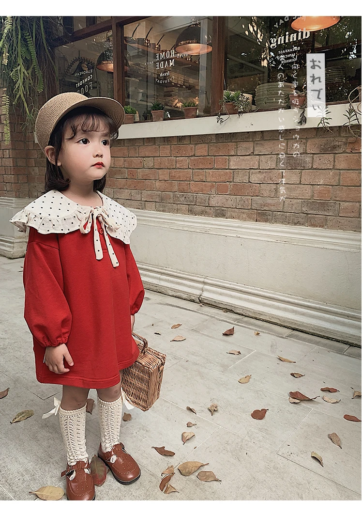 6729 New Fashion Korean Spring Baby Girls Turndown Collar Casual Dress