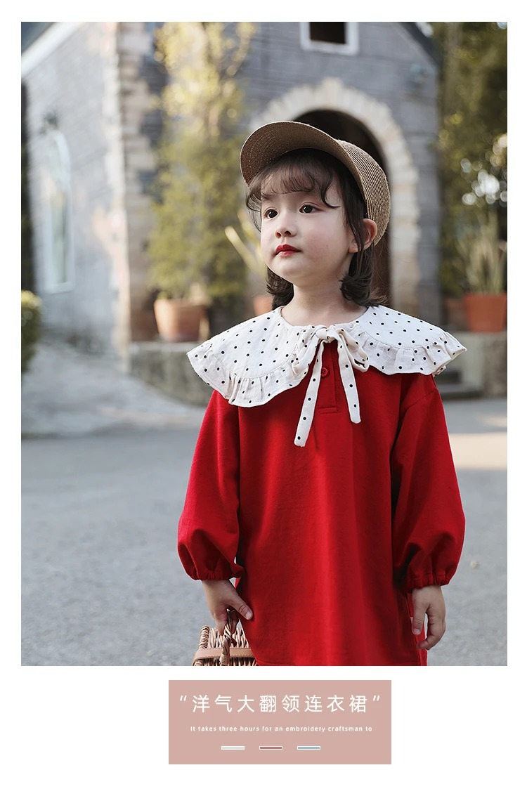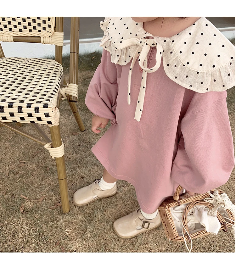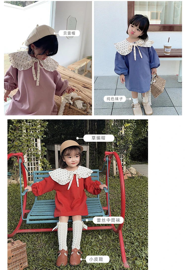 Home > Products > 2020 Spring clothes > 6729 New Fashion Korean Spring Baby Girls Turndown Collar Casual Dress