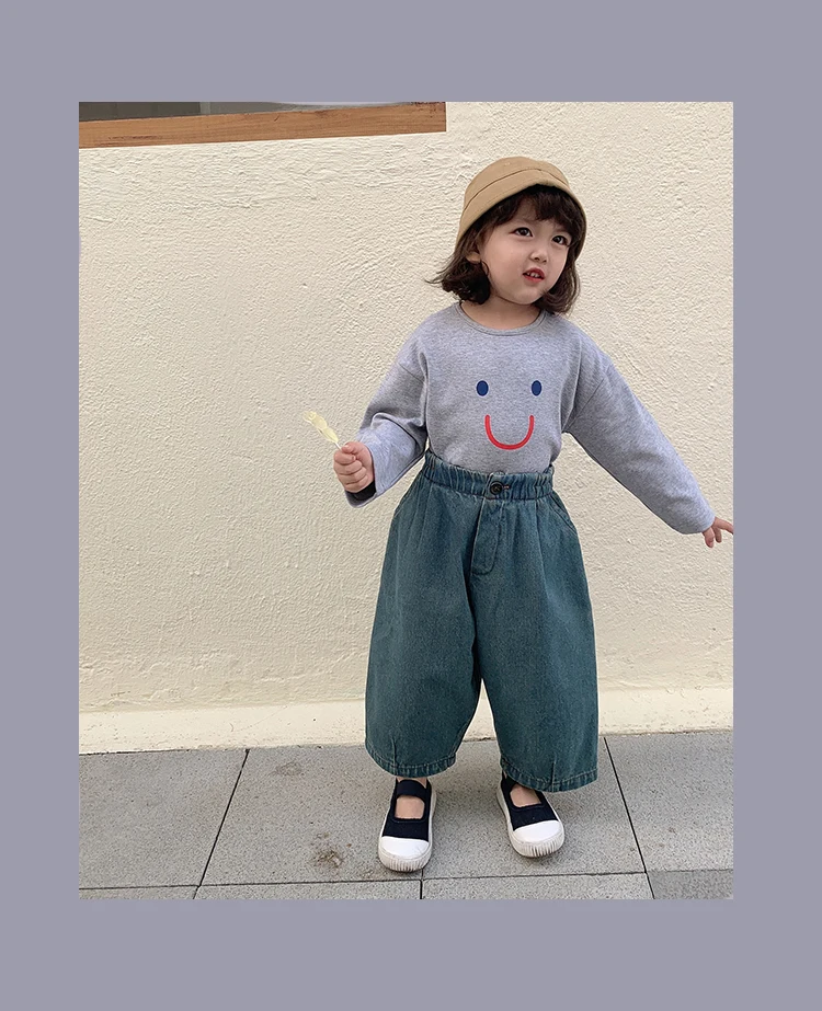 6640 Own Designer Team and Factory Kids Pants Baby Girls Loose Wide Leg Pants Jeans