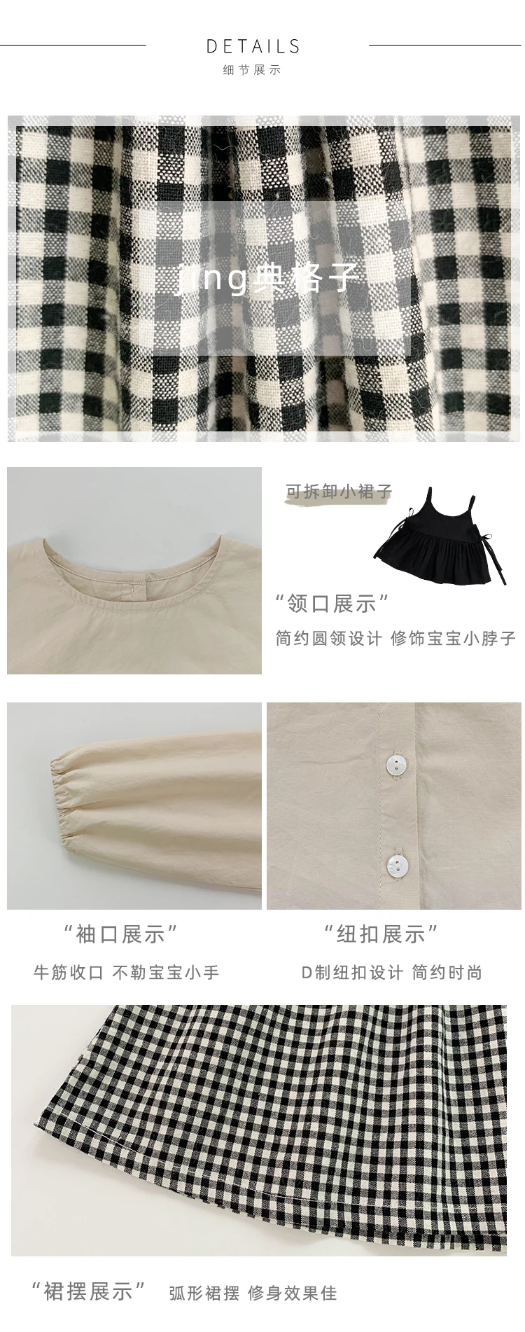 6356 Fashion Kids Clothes Baby Girl Long Sleeved Cotton Casual Plaid Shirt