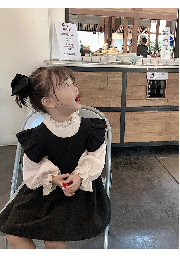 6537/England Style Fashion Kids Clothing Baby Girls' Casual Dresses Color Blocking Baby-doll Dress