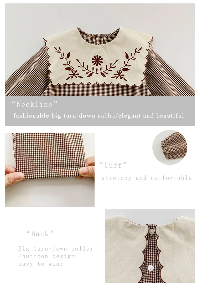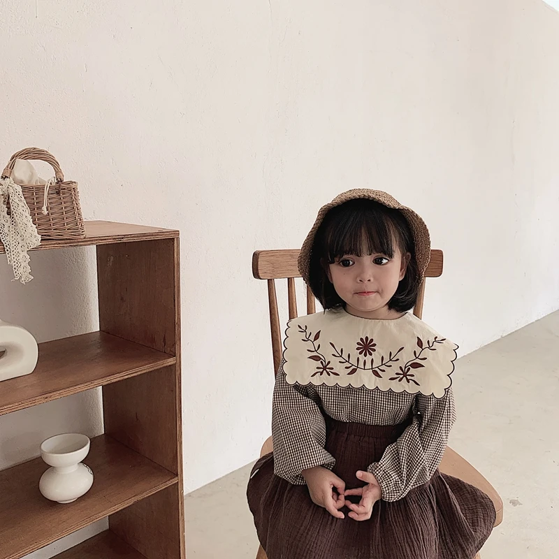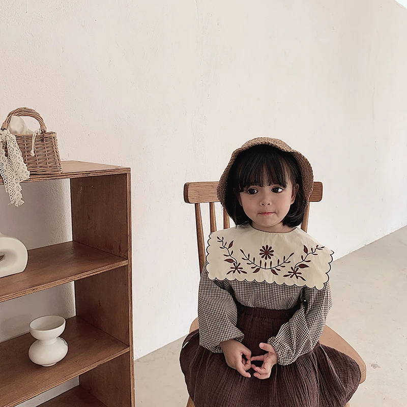 Home > Apparel & Accessories > Wedding Dresses & Ceremonial Clothing > Flower Girl Dresses > 6140/ 2020 Newest Sweet Fashion Elegant Plaid Kids Shirt Spring Autumn Girls Long Sleeve Embroidered Shirt