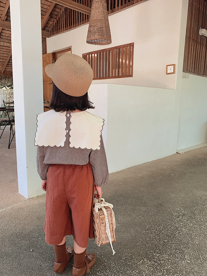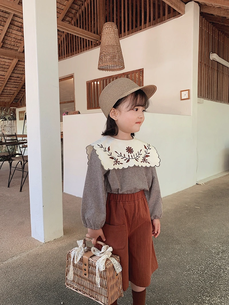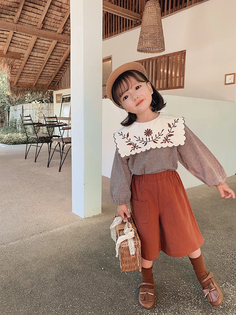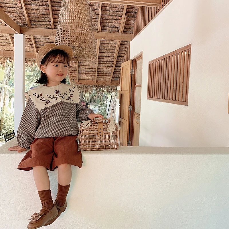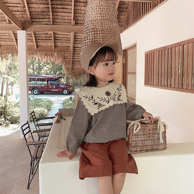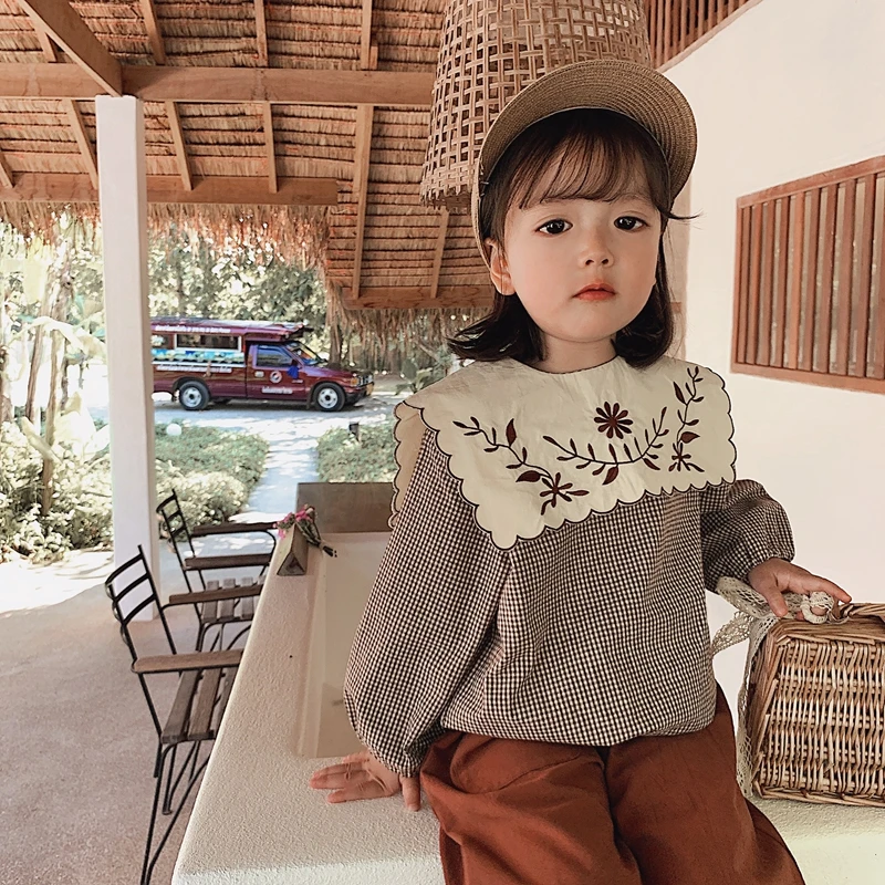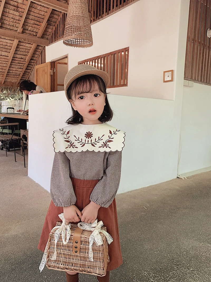 6140/ 2020 Newest Sweet Fashion Elegant Plaid Kids Shirt Spring Autumn Girls Long Sleeve Embroidered Shirt