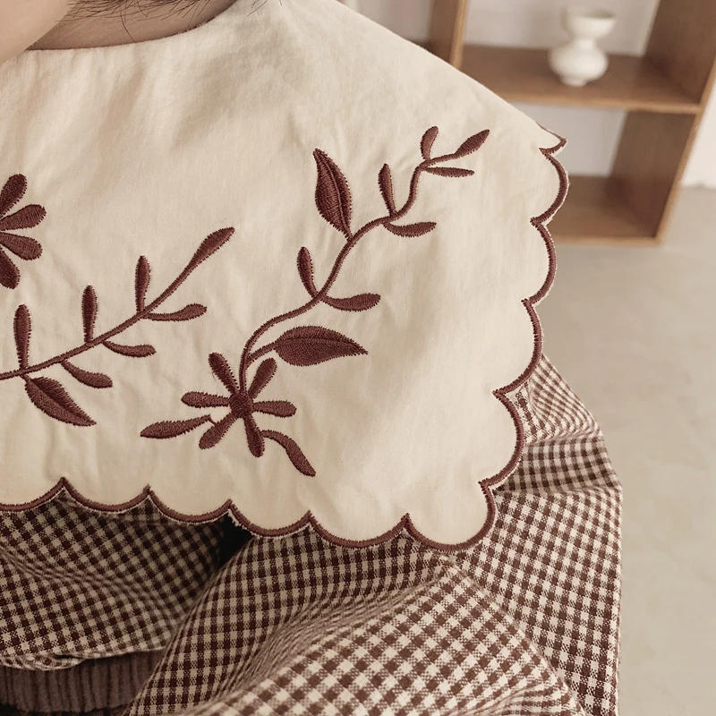 *Design: Floral embroidery, sweet style, back single breasted,plaid.
