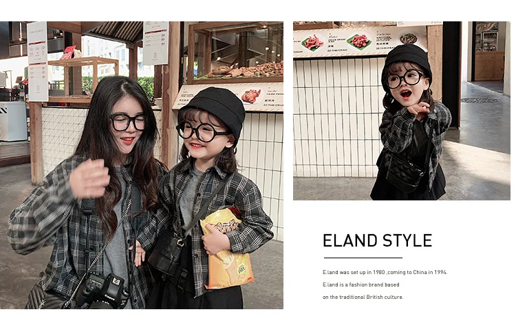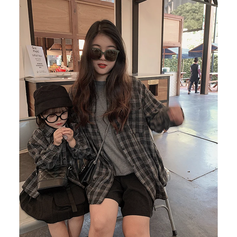 6886 Parent-child Shirt Baby Girl Long Sleeve Fashion Shirt Retro Plaid Blouse