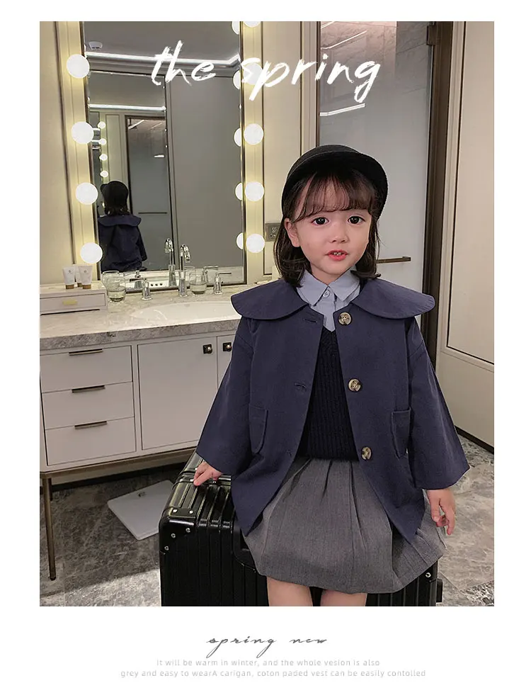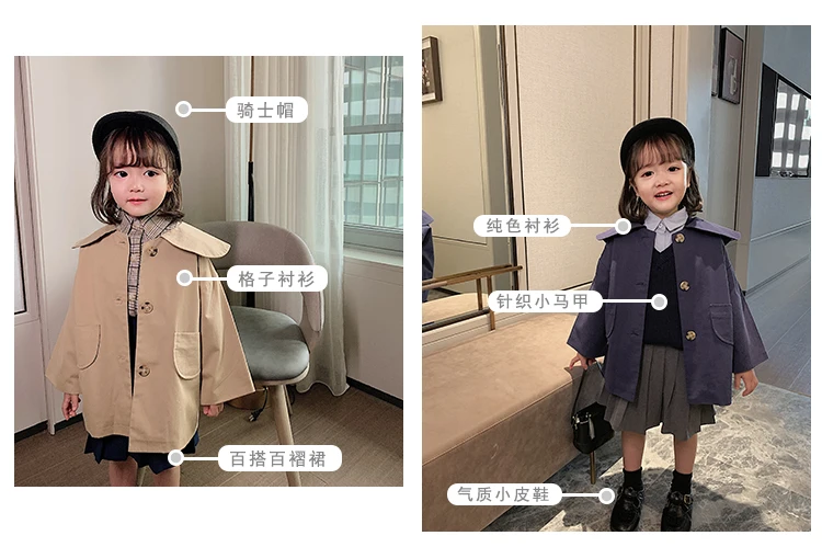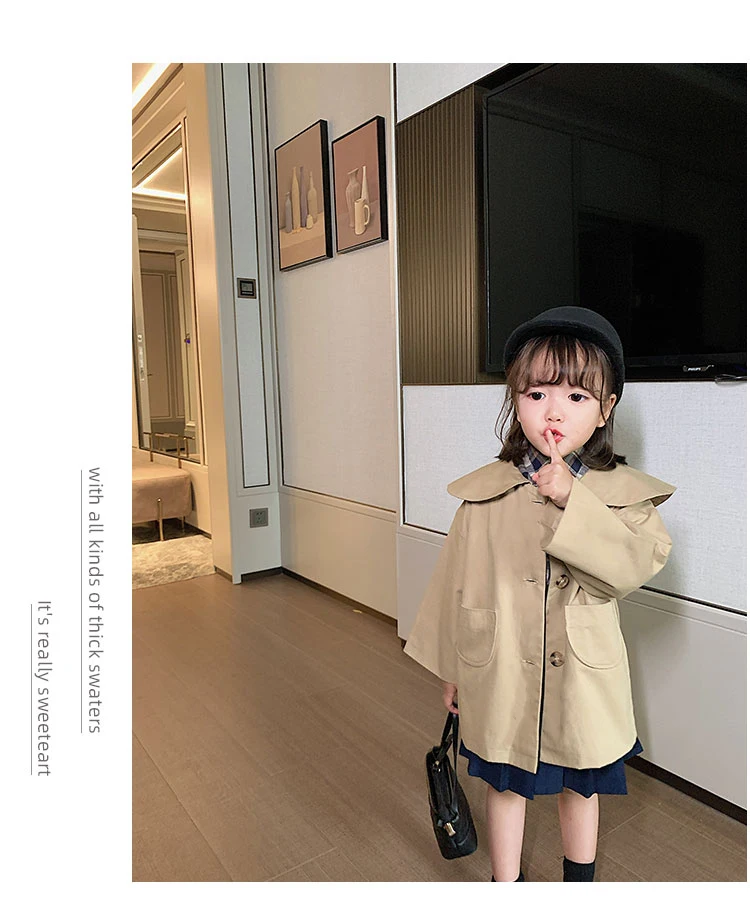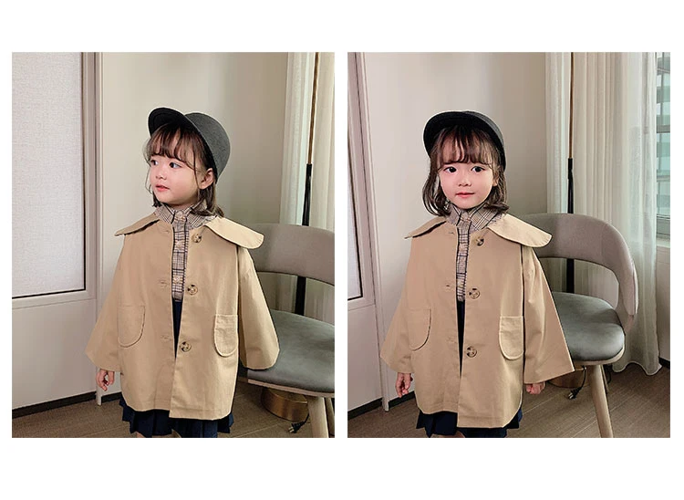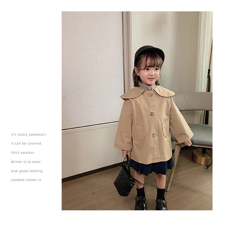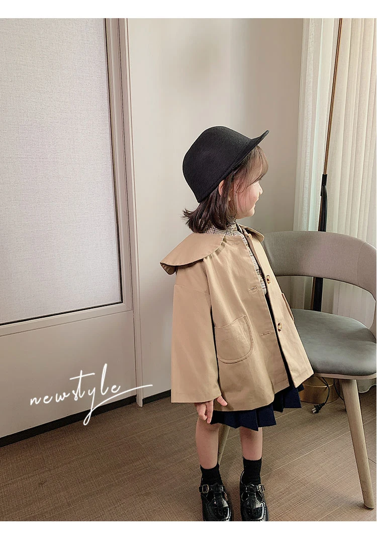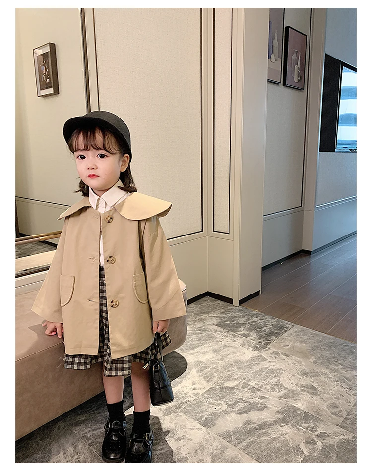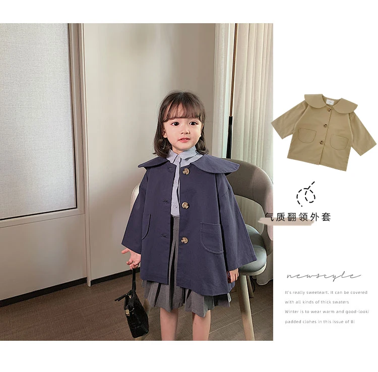 C1011 Wholesale Fashion Baby Girl Coat Turndown Collar Kids Casual Windbreaker