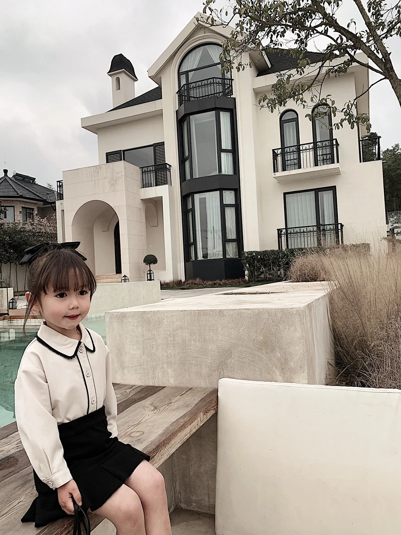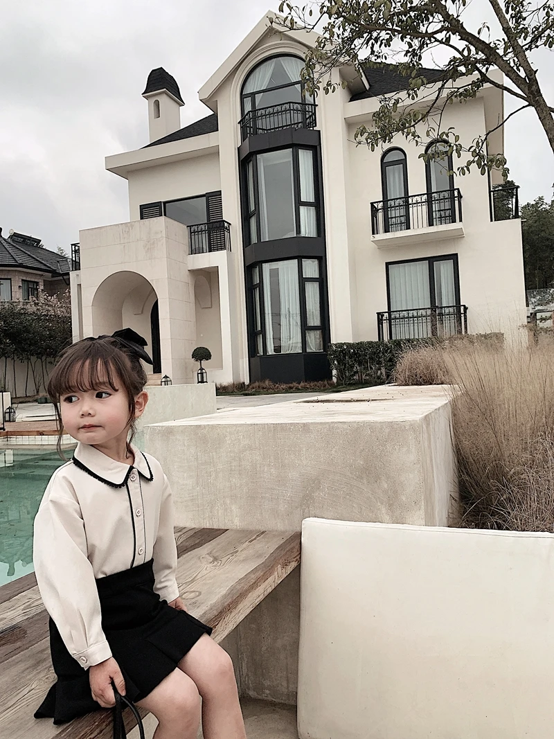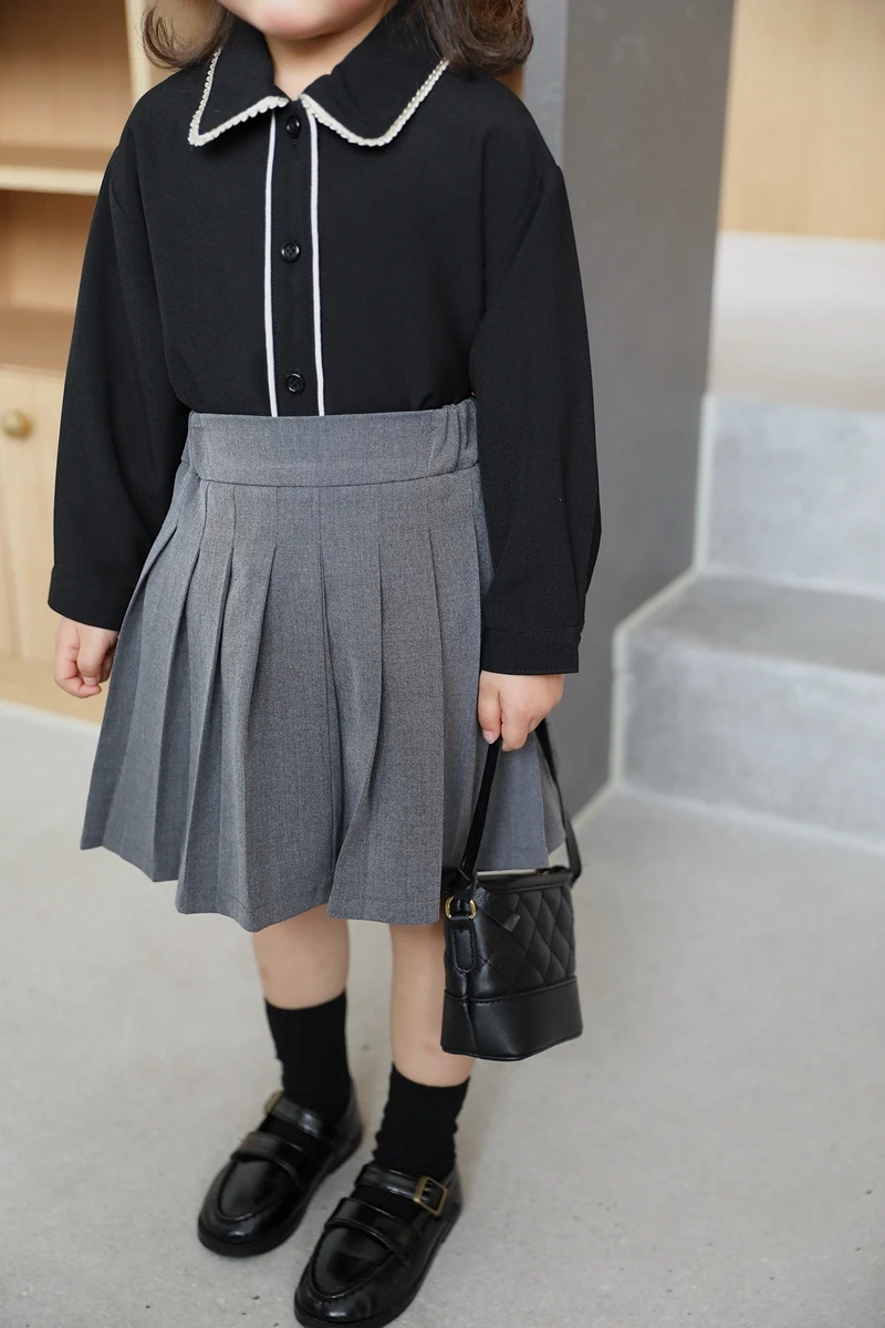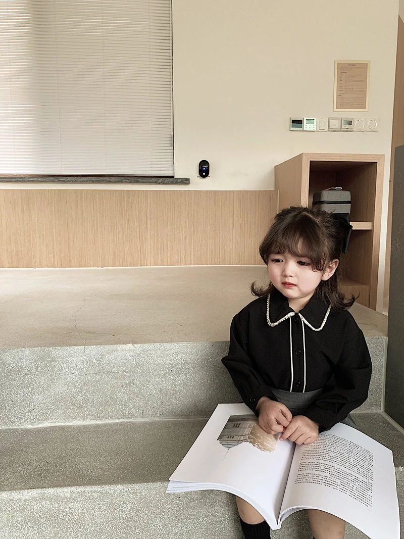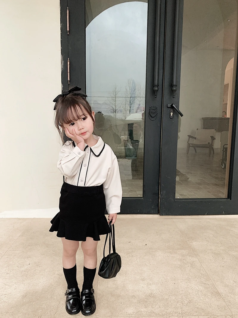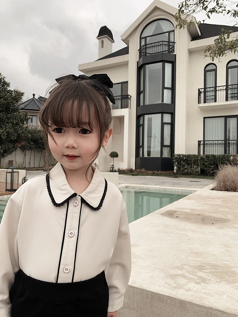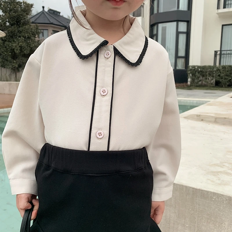 6710/Elegant Kids School Turn Down Collar Sweet Shirt Custom Korea Fashion Wholesale Girls Top