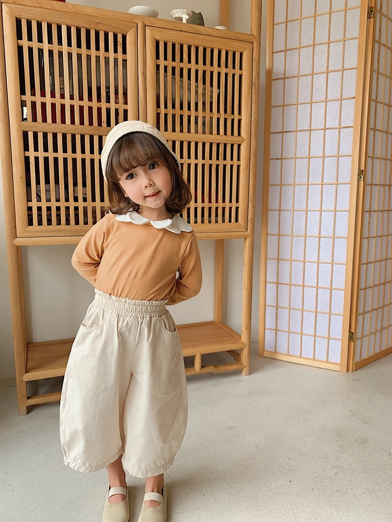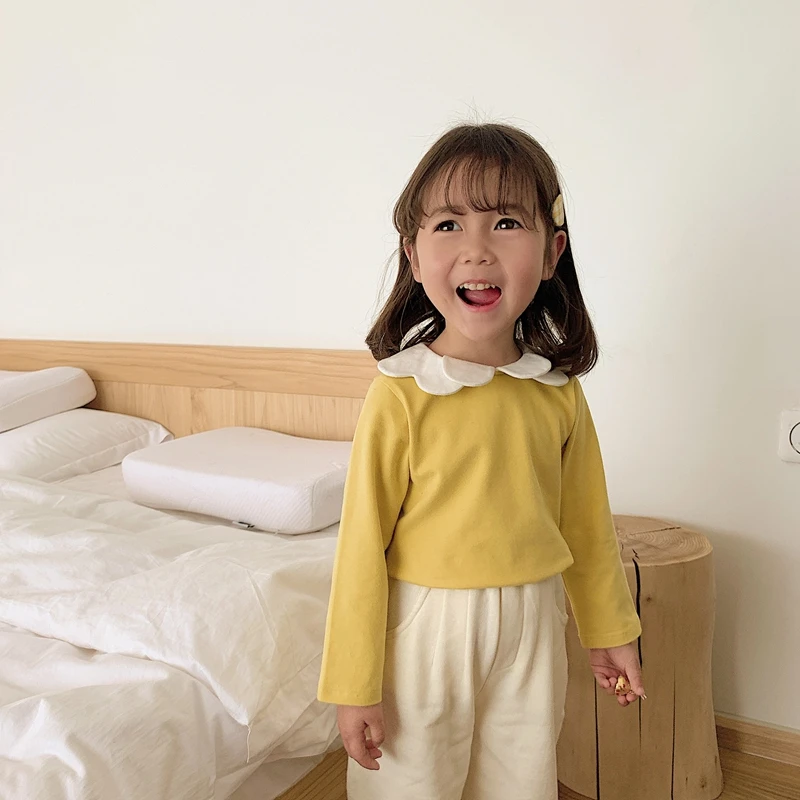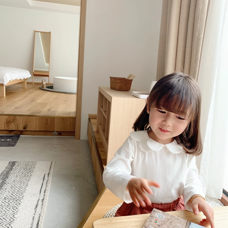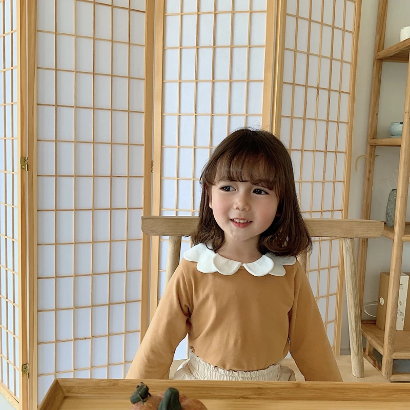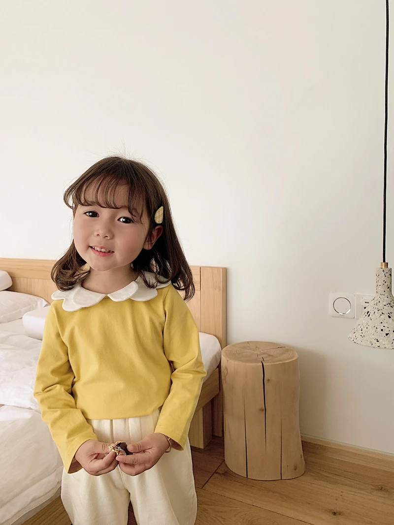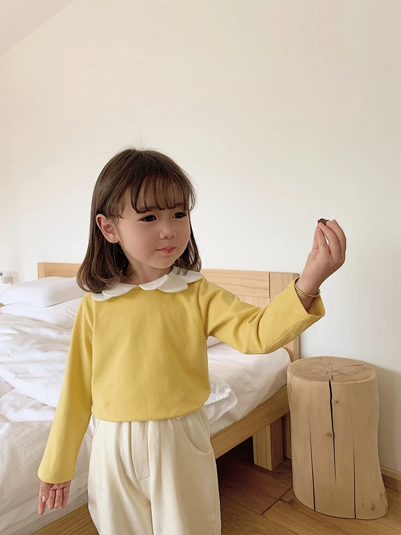 6668/Spring New Arrival Kids Plain Long Sleeve Solid t Shirts Korea Fashion Girls Top