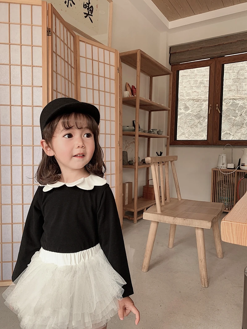 6666/latest Cute Kores Letter Print Sweater Designs for Baby Girls 1 Piece Loose Spring Top