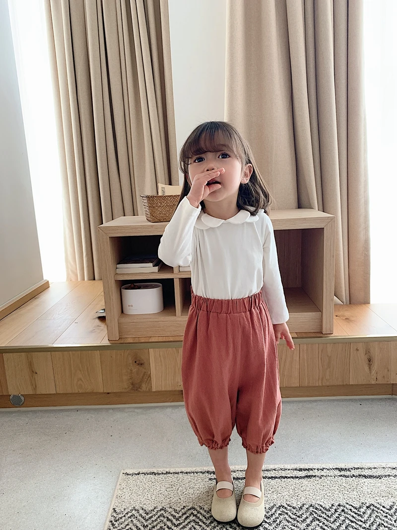 6752/Baby Girls Solid Peter Pan Collar Top With Ruffles Pants Set High Quality Boutique Girls Suit