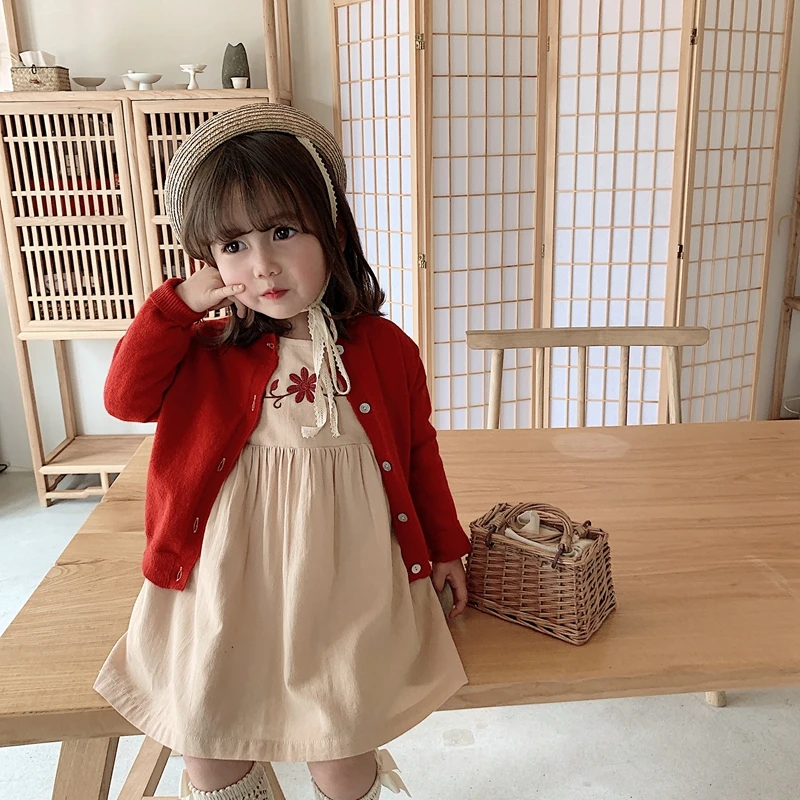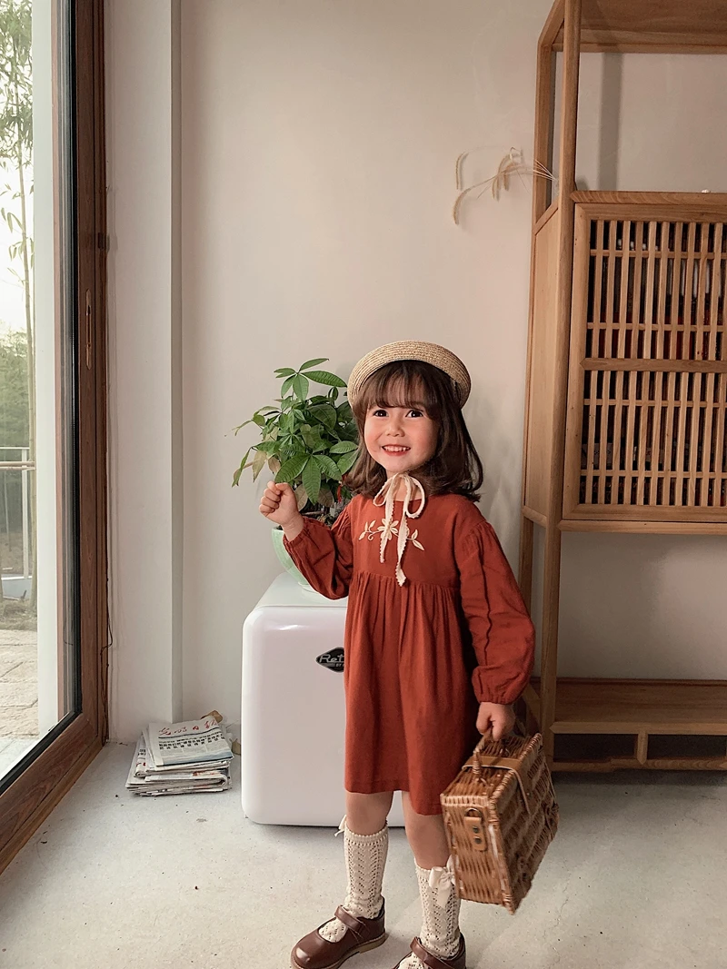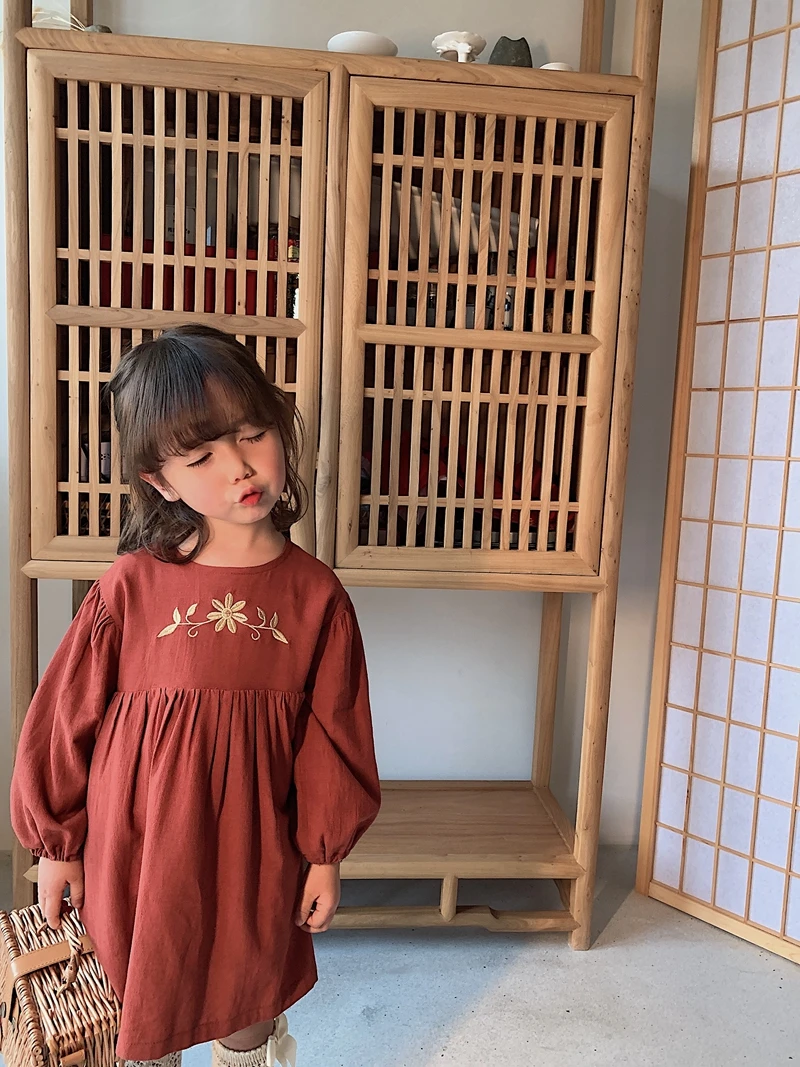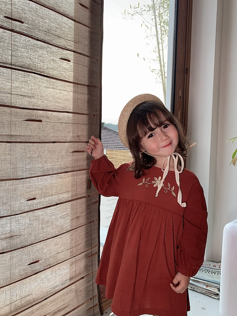 6674/Flower Embroidery Cute Fashion Kids Girl Dress Spring Newest Casual Exquisite Children Clothes