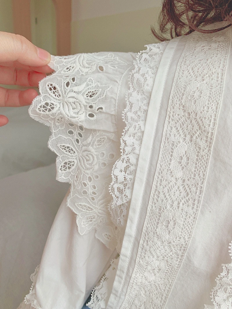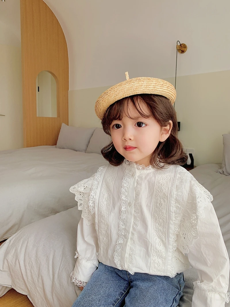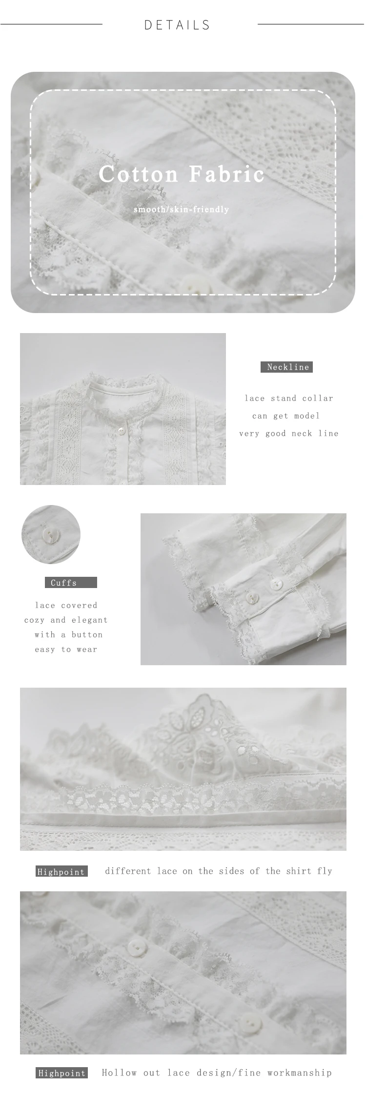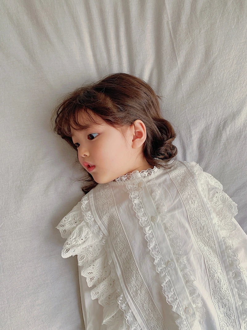 6816/Customize Kids Cotton Long Sleeve Lace Turn-down Collar Shirt Sweet Elegant Casual Girls Top