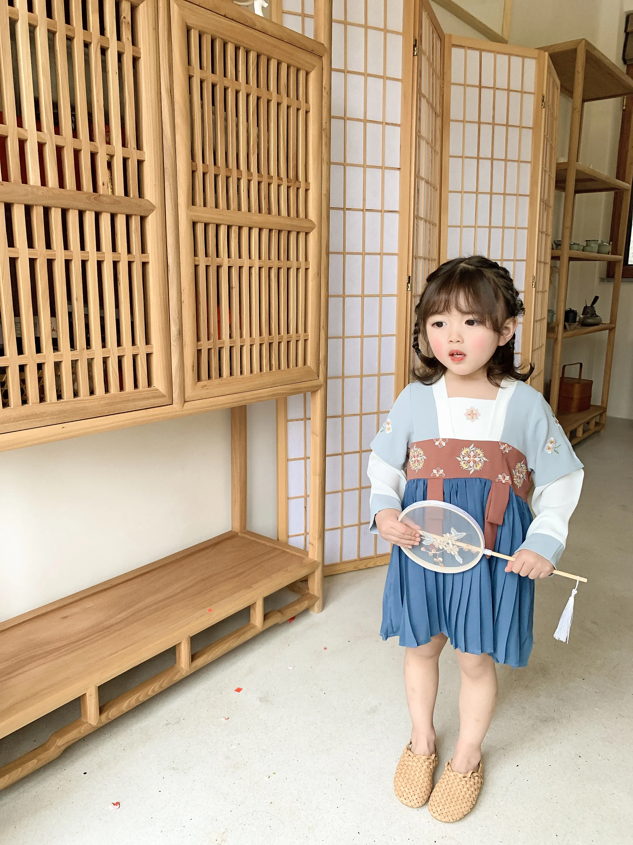 6731 Kids Clothing Chinese Style Dress Kids Casual Clothes Child Baby Girl Embroidered Dress