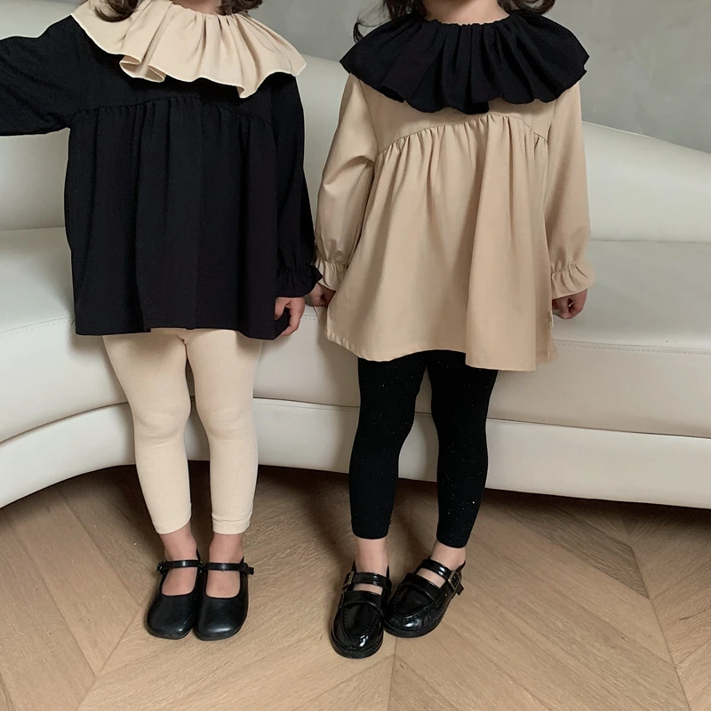 8298/Customised Full Sleeve Vogue T-shirt Girl Kids Casual All-match Solid Girls Sweet Top