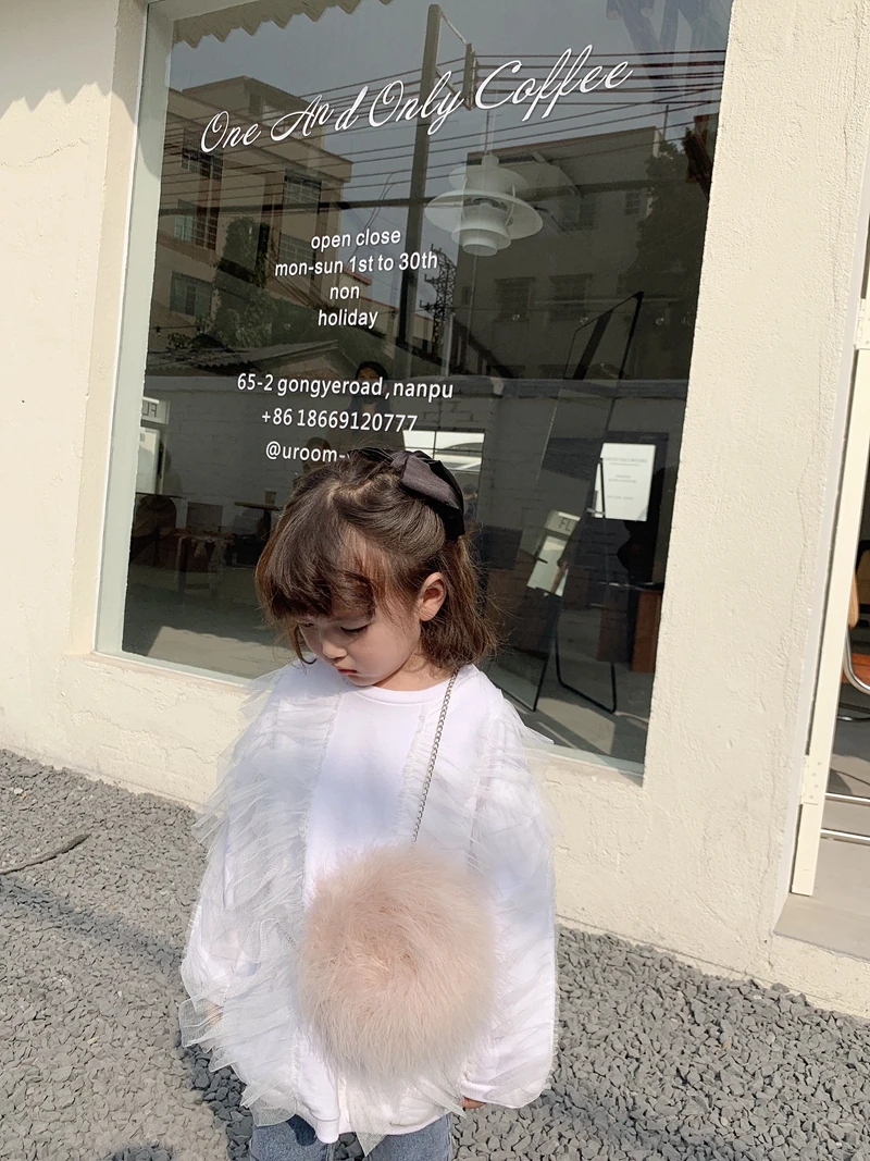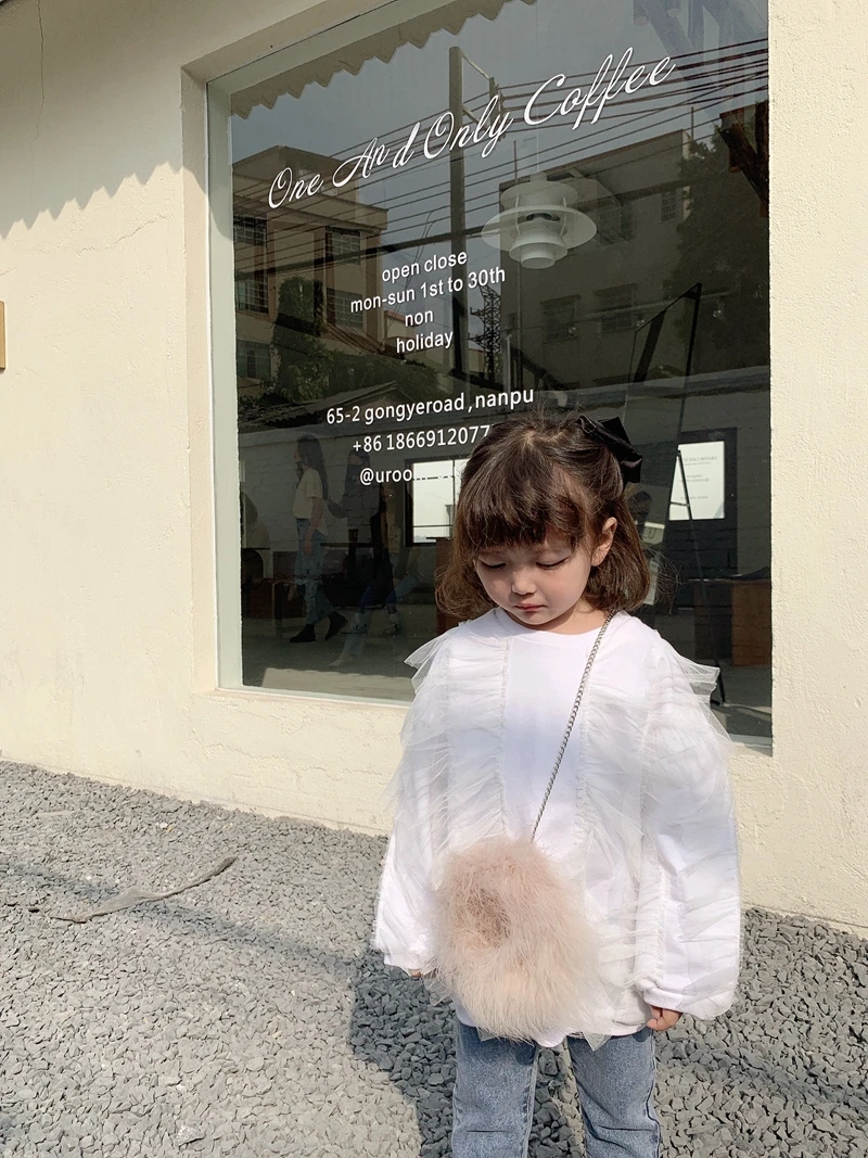 C1057/White Cool Irregular Collar Thin Kids Shirts for Girls High Quality Fashion Sweet Girls Top