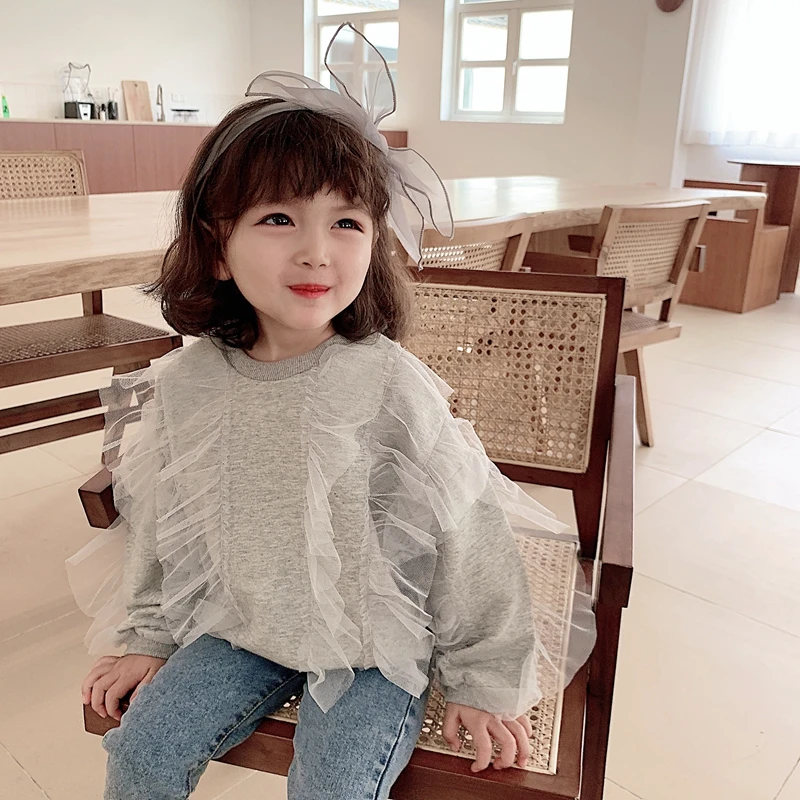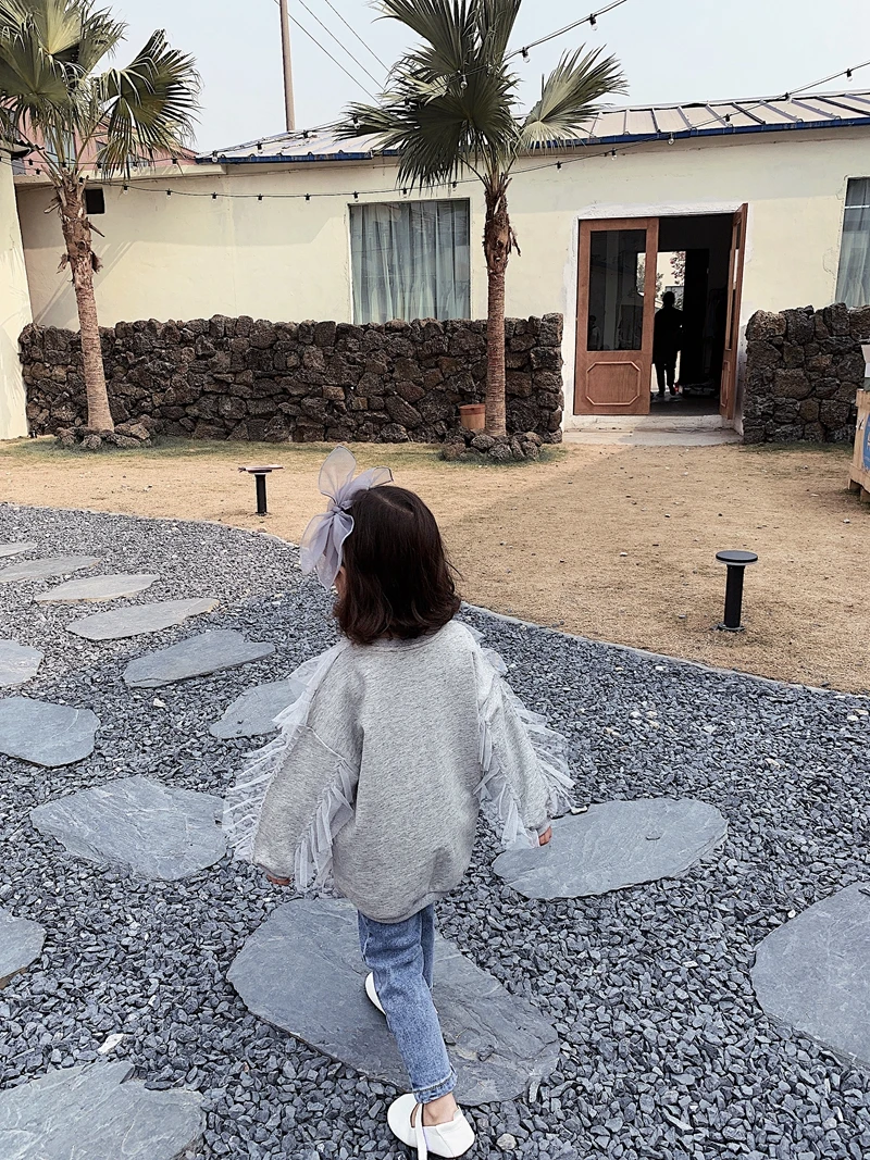 C1007/All-match Casual Korea Fashion Girls False Two Piece Sweatshirt Set Kids Wholesale Cute Sweatshirts