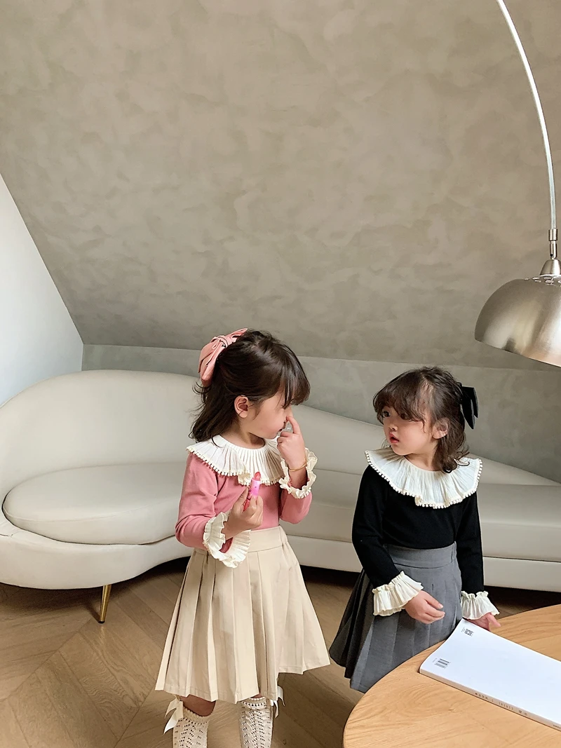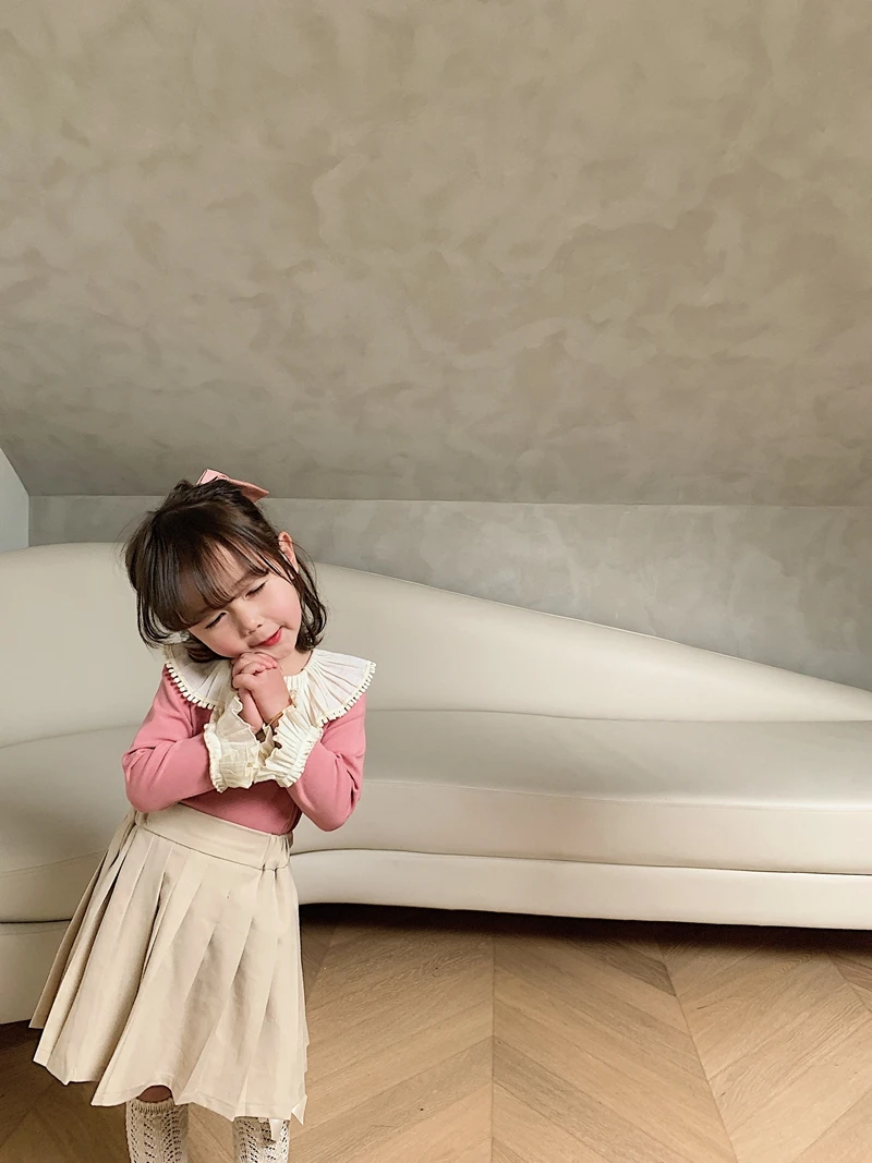 6681/Pullover Solid White Four Colors Available Casual Shirt Girl Kids Korean Fashion All Match Top