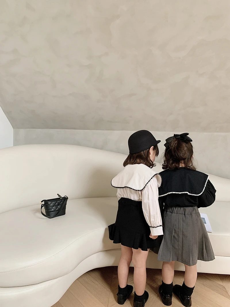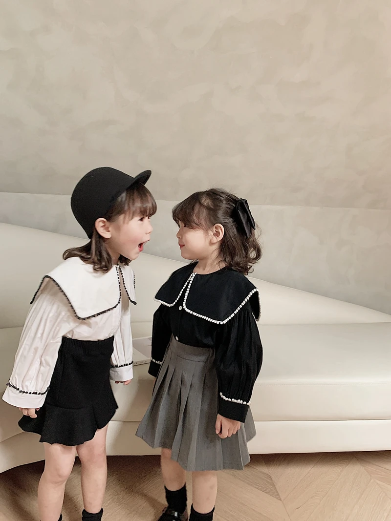 C1057/White Cool Irregular Collar Thin Kids Shirts for Girls High Quality Fashion Sweet Girls Top