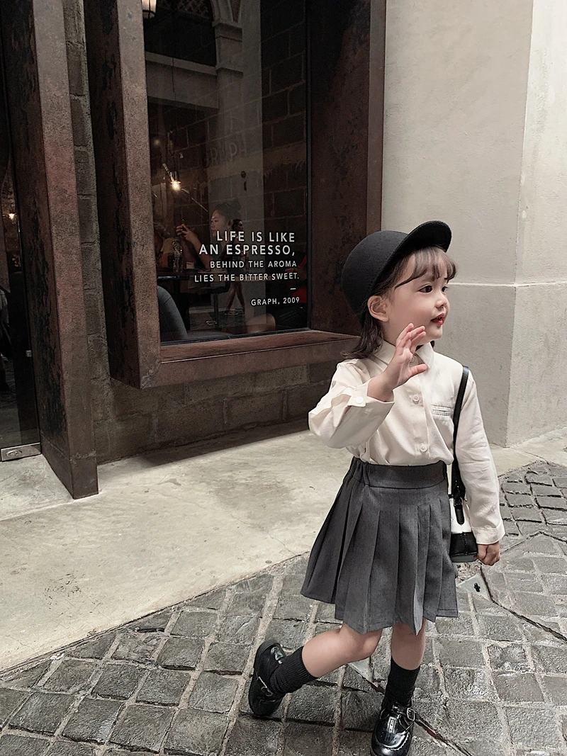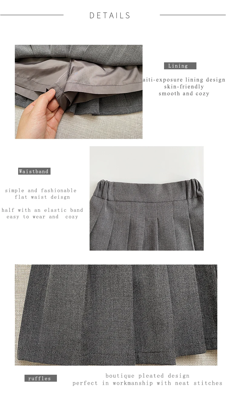 C1025/Hot Sell Wholesale Fashion Cotton Baby Girls Pleated Knee Skirt High Quality School Kid Clothing