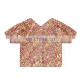 X1230/Floral High Quality Kids V-neck Short Sleeve t Shirt Summer Latest Design Sweet Elegant Kids Top