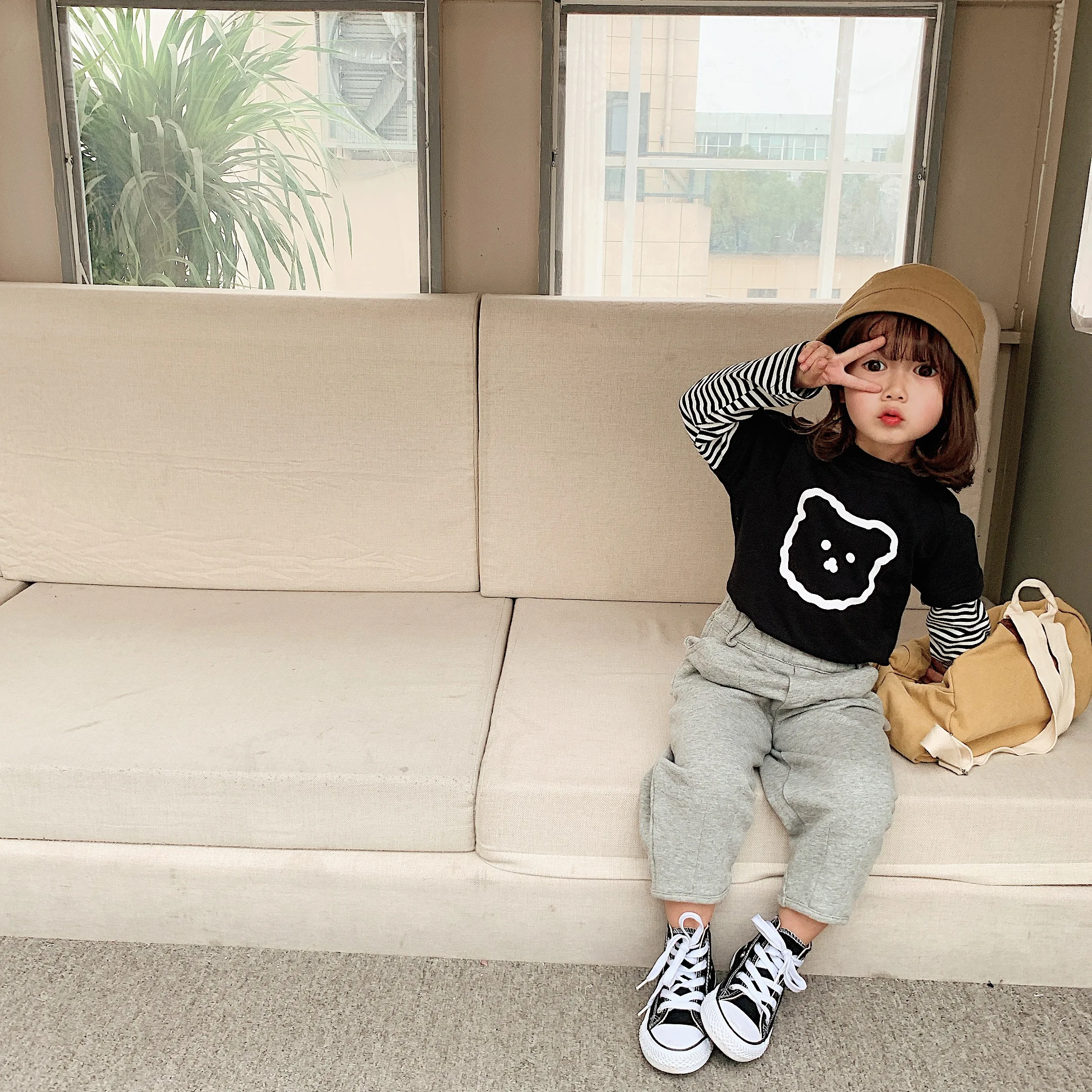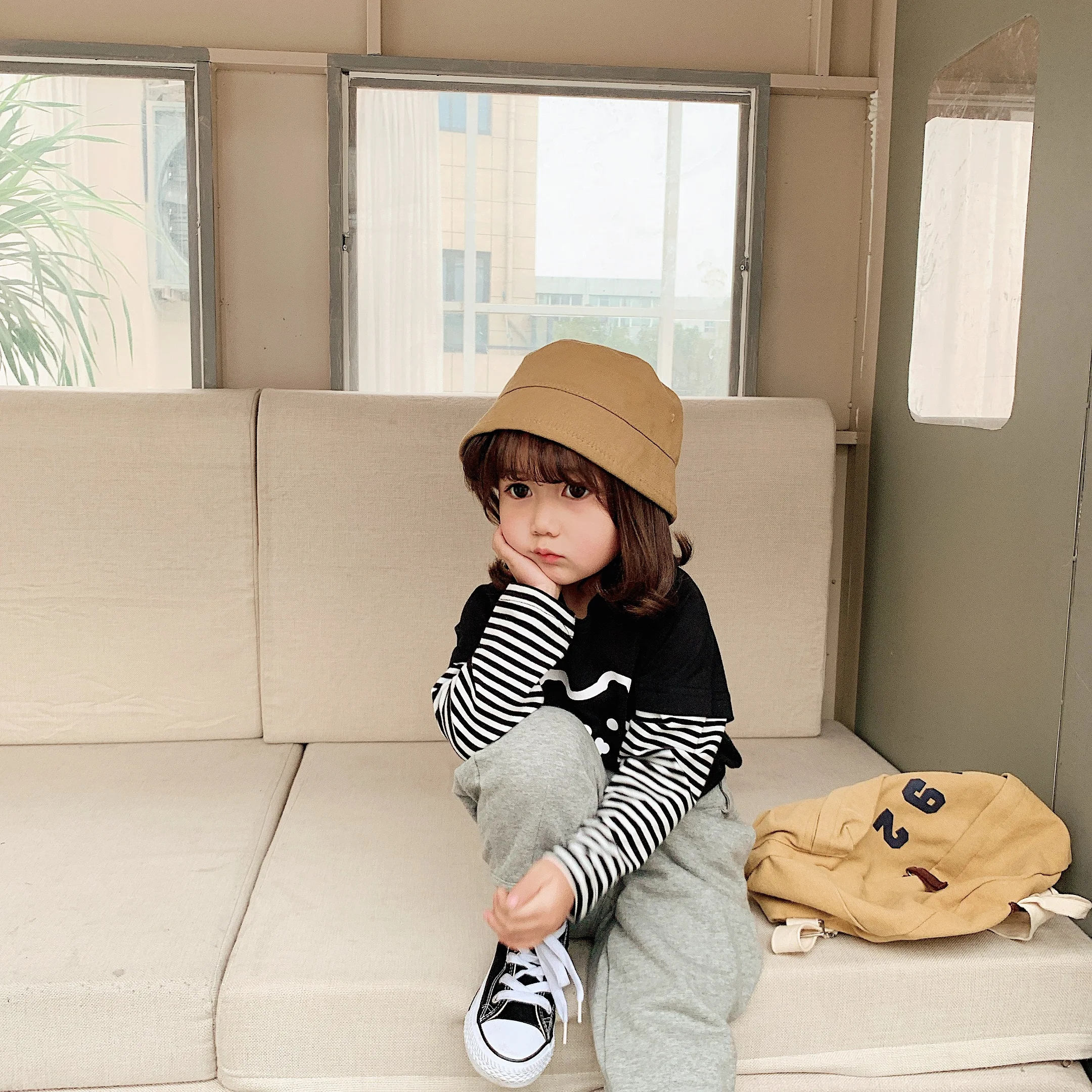 C1018/Spring False Two Piece High Quality Wholesale Fashionable t Shirt Girls Boutique Kids Top