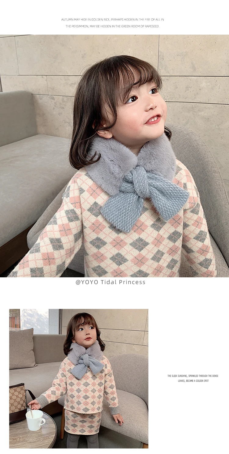 6505/ High Quality Warm Kid Winter Scarf Super Soft Faux Rabbit Wool Fashion Scarf for Boys and Girls