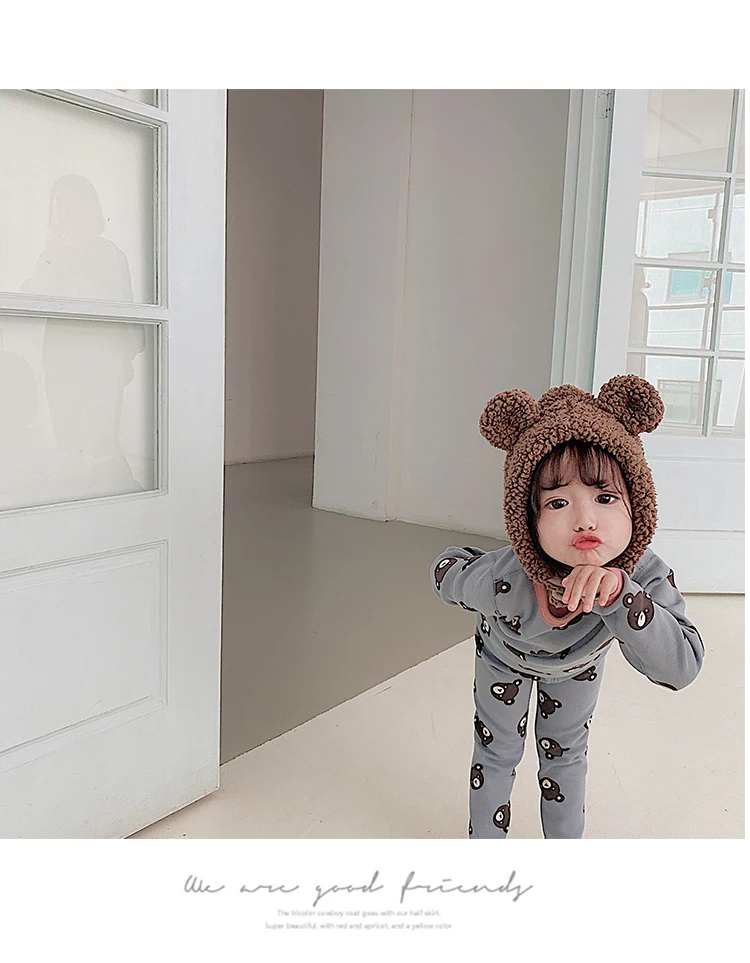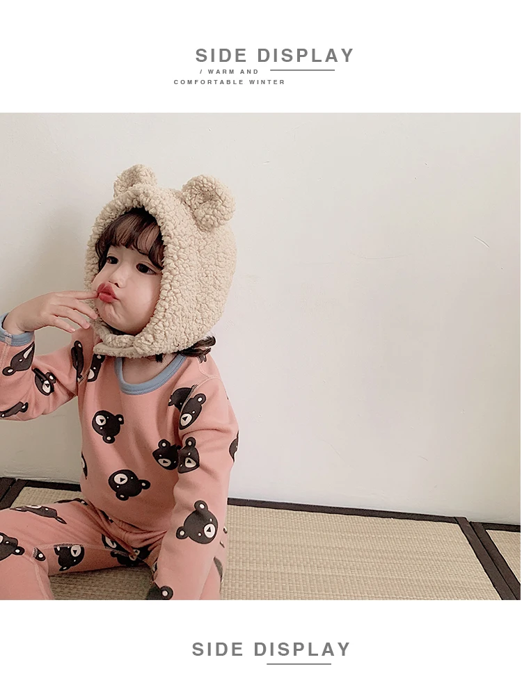 6360/ Bear Ear Winter Outdoor Hooded Kids Coat Cartoon Cute Causal Clothing