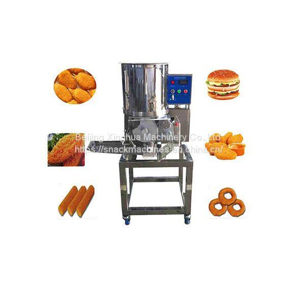 The automatic meat cake forming machine production line can automatically complete the process of forming, sizing, powdering and breadcrumbs. Production of products of different shapes can be achieved by replacing different molds. The whole machine is made of high quality stainless steel, which is wear-resistant and durable, and meets food hygiene standards.Suitable for making hamburger patties, chicken nuggets, fish cakes, potato cakes, pumpkin cakes and so on. The production line has high degree of automation, simple operation, convenient cleaning, stable performance, safety and reliability, and is suitable for use in meat processing factories, catering industry, food distribution centers and other units.