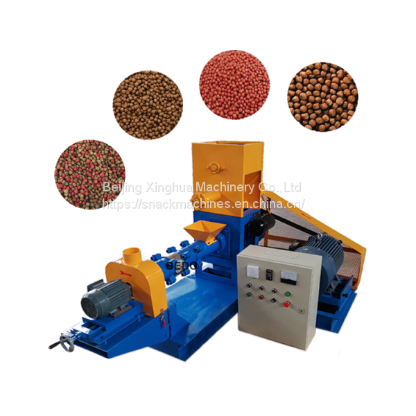 Fish feed extruder line is widely used for producing grains into high-grade aquatic feed pellets for fish, catfish, shrimps, crab etc. It also can make pet feed for dog,cat etc with different shape and chicken feed.The puffing fish feed pellets can float on the water surface without dissolution for over 12 hours. According to your requirement and production scale, extruder can be classified into dry type machine and wet type machine.the wet type machine needs a boiler to make steam which can conduct steam to the conditioner and ripen the raw material in advance.