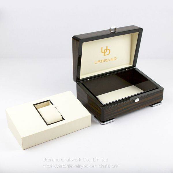 - High Gloss Finished Wooden Pocket Watch Box With Mapa Paper Watch Storage Box With Bottom Drawer Watch Box