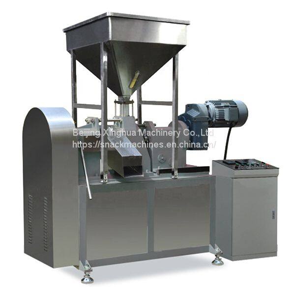 Kurkure/Cheetos are kind of special extruded snacks, very crunchy and delicious in taste. They are made by a special extrusion process. The corn grits are moisturized by water in the flour mixer and fed to the Rotary Head Extruder. In the extruder, due to the rubbing of two rotary plates, the corn grits are squeezed and twisted to curls shapes. The cutting knives can cut them into required length. The Kurkure/Cheetos can be fried in fryer or toasted in oven and then cooled before flavoring. Seasoning is sprayed onto their surface to get different delicious tastes. Due to their delicious tastes and nutrition, they are quite popular with consumers.