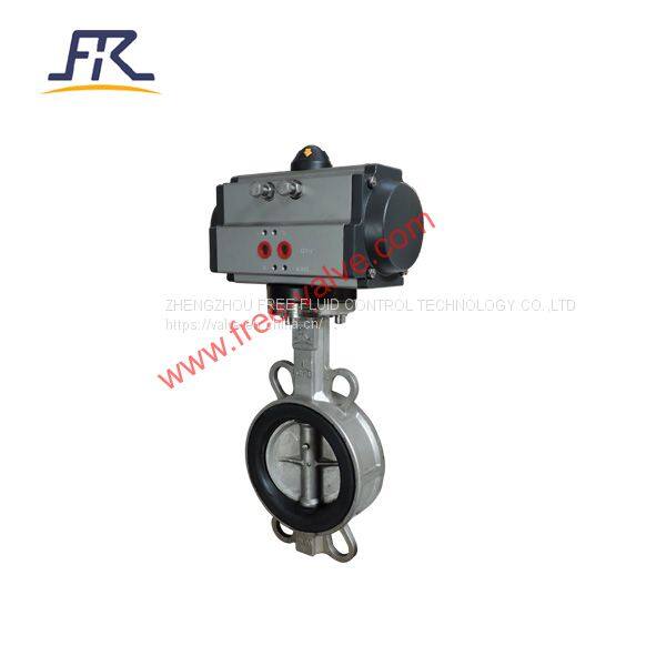 FREE-VALVE’s Pneumatic Wafer Type Rubber Lined Butterfly Valve could easily achieve Bi-Directional sealing, therefore is a widely applied valve in oilfield, agriculture,Power Plant Condensates Waterworks, Water treatment, Seawater, Exhaust,Flue Gas.Because of rubber lined body materials,it is usually used in low pressure lines.