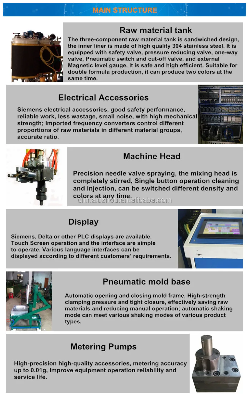 This equipment is used to produce polyurethane insoles, outsoles, high heels, leather shoes, casual shoes, safety shoes, travel shoes,slippers, sandals, flip flops and other all kinds of polyurethane shoes.
