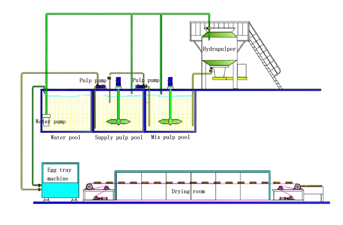 1.Pulping system: Hydrapulper ,Pulp pump ,Air compressor,agitator,Self priming pump,pulping machine.