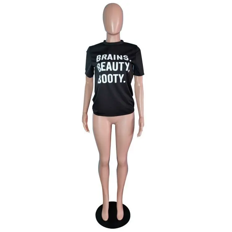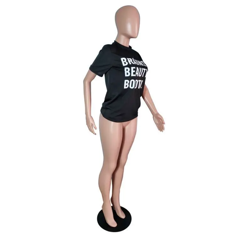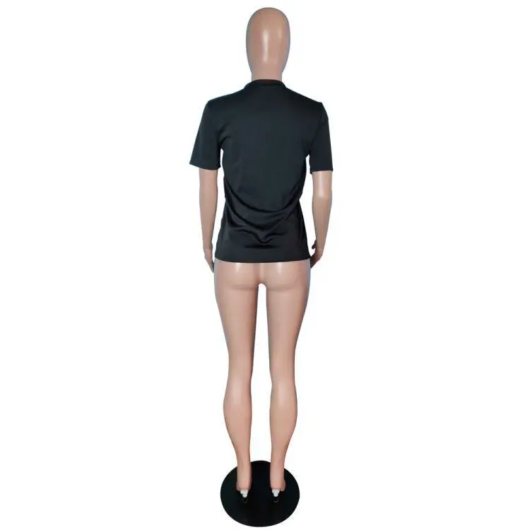 Product Name: | Independent station European and American women's fashion casual black offset printing letter T shirt | ||||||
