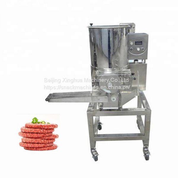 Automatic Fish/Chicken Meat Patty Hamburger Burger Forming Making can automatically complete the meat filling, molding, output and other processes, with the sizing machine, the powder (chip) machine, frying machine, cooking machine, quick-freezing machine, packaging machine into a cooked food production line. With high yield, stable quality characteristics.